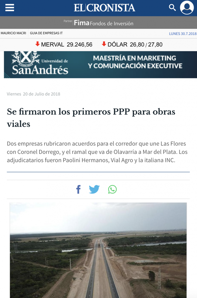 El Corredor Vial A estar? a cargo del consorcio integrado por las empresas Paolini Hnos., Vial Agro e INC, quienes administraremos 706 km. de rutas nacionales en Buenos Aires: desde Las Flores a Coronel Dorrego (RN 3) y desde Olavarr?a a Mar del Plata (RN 226).